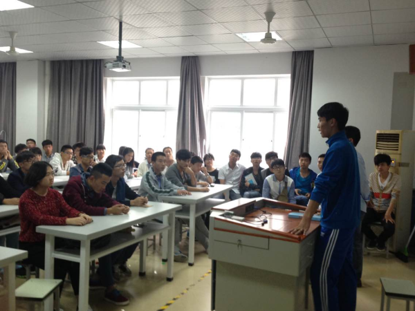 10月12号,化工学院学生会在4号楼有为楼313召开全体大一、大二学生会成员会议。出席本次会议的领导有化工学院分团委老师陈凯华,此次会议对象为化工学院大一学生会新成员。 图为:化工学院大一学生会成员 会议首项由分团委陈老师仔细介绍了学生会性质、理念。学生会宗旨是参与学校民主管理,维护学生合法权益,丰富校园文化生活,以及增强学生的凝聚力。老师让我们谨记自己已经是一名成年人,还是化工学院学生会的一员,无论做什么事情一定要考虑到这些。那有力的话语在我们耳边回荡,从学生的眼中不难看出他们已经明白了自己肩上那份沉甸甸的责任。最后他总结:学生会是为全体学生服务的,要及时地把信息发布给同学,第一时间为同学解决问题。 第二项进程是各部门的学长学姐发言。他们介绍了各自部门在学生会中的作用,以及一些勉励我们的话。这些都让我们深深的了解到学生会是一个充分锻炼我们的地方,我们可以在其中接触到更多工作的机会来锻炼自己。其中一位纪检部的学长说了一句十分实在的话:“我是一个实在的人,我们喜欢有能力的人。学生会是个唯能力而论的地方,需要的是精英。”这句话为许多同学敲响了警钟,之后陈老师的话也侧面印证了,他说在我们大二的时候要进行减员,而能决定你是否能继续留下来,取决于你大一的工作表现。这无疑又让同学们在无形中下定了决心。 图为:化工学院体育部负责人正在讲话  会议结束后,同学们有秩序地走出了教室。只是从一张张面孔中不难看出,同学们已经为这充满挑战的一年做好了心理准备。 化工学院 郑兵兵 文 / 倪浩程 摄