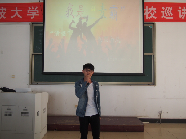 图为:化工学院3141苏歌正在清唱