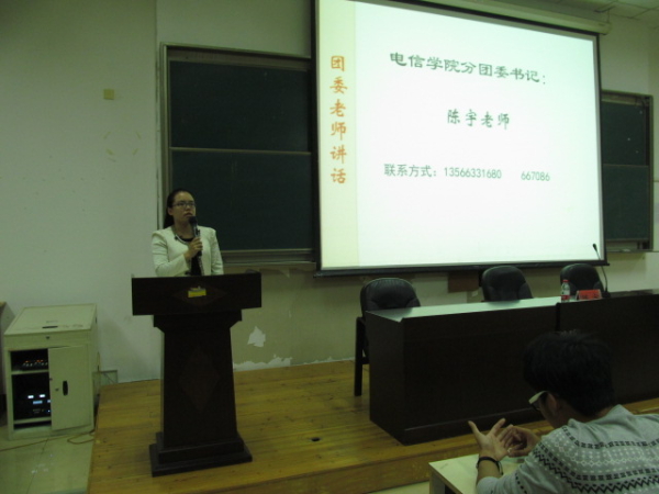 图为:我院团委书记陈宇老师讲话