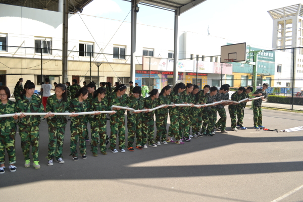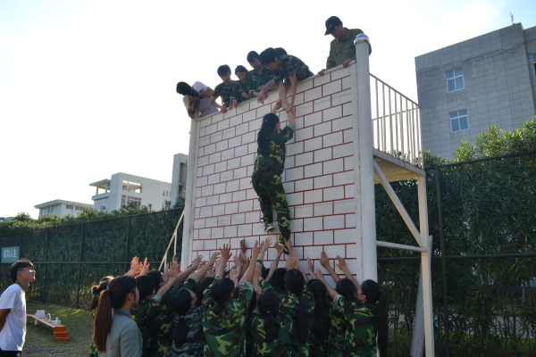 下午国贸三个班级在风雨篮球场集合,在老师的示范和讲解下,了解了本次团体活动的任务。五个团队合作的项目,在六个小分队的共同努力下,进行两轮比赛,在比赛中,同学们发挥团队精神,认识不足,重新调整状态,取得了比第一次更好的成绩。在欢笑中同学们迎来了求生墙这一艰巨任务,讨论好各自的任务后,男生自觉当起了主梯与副梯,用自己的大腿和肩膀为同学垫起了求生路。其余同学则在下面撑起双手保护挑战的同学,由女生踩着男生的肩膀,紧贴求生墙,双腿侧踢,获救的同学则手腕握紧手腕,最后成功翻越。