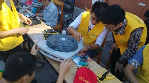 10月19清晨,一群朝气蓬勃的年轻人代表着宁波职业技术学院海天学院前往北仑凤凰社区展开以免费维修家电为主题的志愿者活动。本次活动由志愿者部牵头同技能部共同展开。早上七点半,由志愿者部和技能部的两位副部长带领,两部门在凤凰社区展开了本学期第一场家电维修活动。在本次活动中,一部分志愿者进入社区进行宣传,一部分成员们则在社区门口展开站点式的维修服务。凤凰社区的叔叔阿姨们在得知学生在开展义务维修活动后,纷纷把家中需要维修的电器交到志愿者手中,志愿者们热情的接过电器,就马上动手维修起来,并耐心的为他们讲解。看着已坏了的东西又能运行自如了,居民们甚是欢喜,不断地称赞志愿者。一件又一件的家电维修成功也为志愿者们增添了不小的信心。志愿者队伍认真负责的工作态度赢得社区居民的高度赞扬,在社区居民感谢声中本次社区家电维修圆满结束。