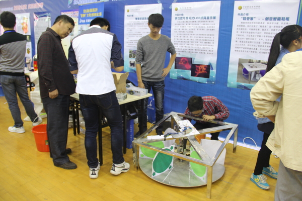 新元素创新小组积极备战,于赛前到达目的地布置比赛作品,安装比赛设备。保证赛会的正常进行,于赛时和各地学生同台竞技、争创佳绩、相互切磋、交流研讨,期间该小组通过答辩、实物演示将作品完美诠释。不仅赛出了宁职人的风格,而且赛出了海天学子的水平,真正做到让学生成为学校学院的名片,使师生共同进步成长,使大赛具有专业水准,更让学生的智慧果实得到最大程度的价值体现!