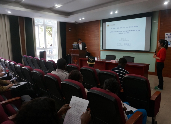 10月23日下午13:30,国际学院在艺术楼102教室举行了一场关于留学在校的安全教育问题的讲座。后勤部郭华恬老师受邀为留学生再一次强调了安全问题的重要性,国际学院党委书记袁建萍老师主持会议。