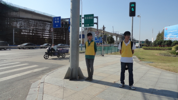 下午1点,党校学员们在东门集合,党校学员们分成三组在新大路的各个路口上疏导交通,指挥行人安全过马路。“也许我们只是社会中的一颗微尘,但是我们依然有存在的价值”余佳英在分配工作时说道到。