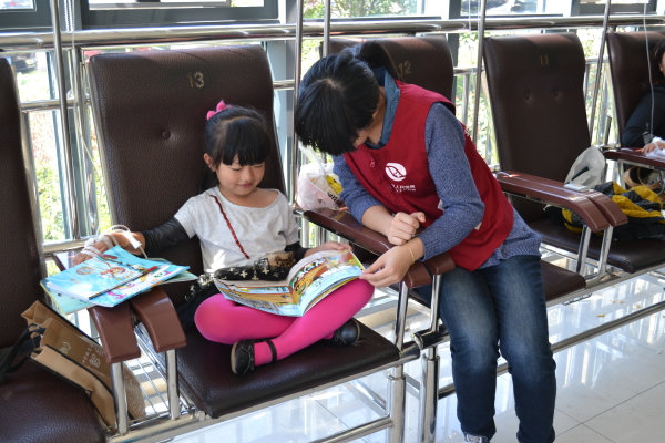 该志愿者活动分为四块内容,分别为输液大厅,自助挂号,取票化验单和为病人指路。其中输液大厅的三名志愿者为病人提吊瓶,及时呼叫护理人员,还会与小孩子一起玩耍,为他们带来阵阵欢声笑语。自助挂号区的三名志愿者及时为病人挂号,让他们能够尽快就诊。取票化验单的两名志愿者为一些不懂得如何操作的病人去化验单。指路的两名志愿者为不知方向的病人们指路。经过志愿者们的贴心帮助,病人们能够节约不少时间,也能够让病更快得到就诊并且康复。