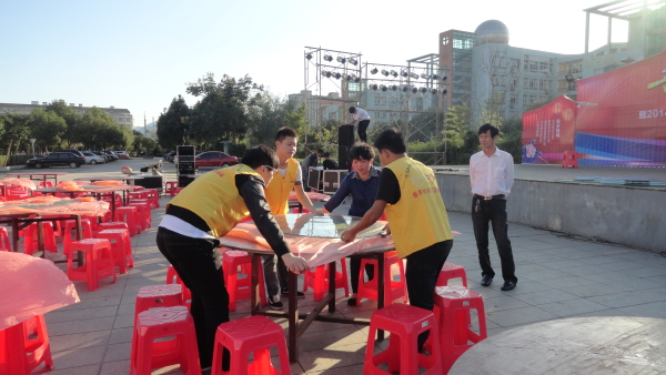 黄鹂社区晚上将要进行“百家合宴”,邀请小区居民一同观看晚会,并一起吃饭、聚餐。志愿者们在了解情况后,完成轮胎涂漆志愿者们都赶到黄鹂广场“百家欢宴”现场帮忙。虽然正处正午,烈日当头。但志愿者们依然相互配合、秩序井然,协助黄鹂社区工作人员完成所有工作。我院志愿者无私的精神得到了黄鹂社区工作人员的高度赞扬,对于我院的志愿者工作也表示了充分的肯定。