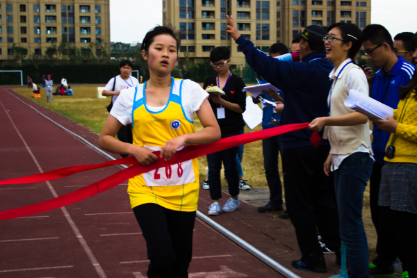 我校29日下午举行的全校性女子5000米比赛是当日下午最后一场项目,共有五名来自不同专业的女选手参加比赛。或许是因为当日过多的比赛,使得四五两名没有过多漂亮的成绩。在当中十二圈半的追逐赛中,第一名的陈雨婷、第二名的姜星月以及第三名的任唯选手实力相当,持续八圈之后,陈雨婷选手及姜星月一展虎豹之态摘得大赛的金冠和银冠,而任唯选手也以29分43秒24的成绩摘得铜冠。在赛末,赛场又迸起雷鸣般的喊声,落于最后的0209号王莎莎选手也冲刺到了终点,在运动场上,五名女同学的汗水都撒便了跑道四周,在微弱的夕阳之下透出一股七彩的光芒。在今日,这五名可爱的选手不但战胜了5000米,更是战胜了自己。她们明白,名次无谓,只有胜过了自己,那种精神,才被称为奥林匹克精神,运动的精神。