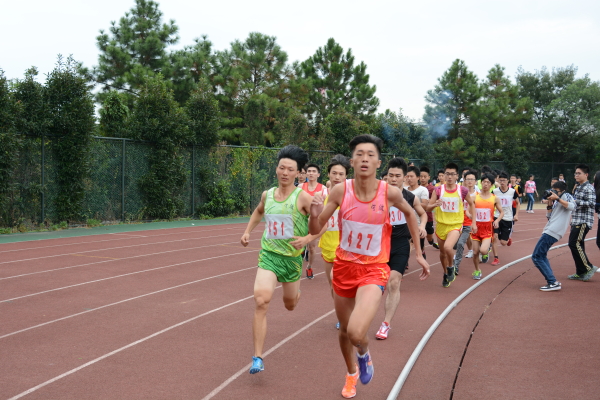 10月30号9点50分,宁波职业技术学院男子5000米决赛。  枪声响起,26名风一样的男生如脱缰的野马冲了出去, 我们在看台上看着这场令人沸腾的比赛。这是一场恒心与毅力的比赛,每个运动员都在尽自己最大的努力去竞争, 首位之间的争夺引起了全场的轰动,一圈,两圈,三圈,黑马在第四圈时超过了最后的三名运动员,第5圈,有些男生的脚步因体力不支渐渐的慢了下来,紧凑的运动员们的间距也被慢慢地拉开,但是他们还在努力着,还在拼搏着,不肯放弃一丝一毫的机会,一圈又一圈,26名运动员都分散在跑道的各个方位,而那两个领跑者始终以最先的姿态奔跑着,带动着后面的运动员们。这时,领头羊发生了改变,你追我赶,不断地超越前进,这一刻,仿佛整个赛场都变成了他们俩的舞台,所有人的目光都注视着他们。而圈数正在慢慢的减少,运动员的体力也到了极限,有些男生由跑步变成了走路,脸色苍白,但他们没有一丝放弃的神情,他们体现着运动精神,坚持不懈、勇于拼搏!冠军之争还在激烈的进行着,但在接下来的一幕却让我们明白的体育竞技真正的意义,在互为竞争者的立场上,在即将分出胜负的关键时刻,冠军人选依然能将同伴递给自己的谁分给与他一路竞争到底的对手。也许是敬佩,也许是认可他与自己付出相同的努力,但可以肯定的是这一幕感染的不仅仅只有赛场上的运动员们。 终于,最后一圈的铃声响起,他们二人的竞争越来越激烈,欢呼声引爆全场。最后的100米!两位运动员拼尽全力的冲刺,徐成跃以17分33秒07.成为了5000米的冠军,叶开以17分35秒3位居亚军。看完了全场比赛,相信每一个人都为他们俩的表现折服,你们就是5000米赛场上最当之无愧的胜利者! 记者团 林瑾颖/文 俞琼荧/摄