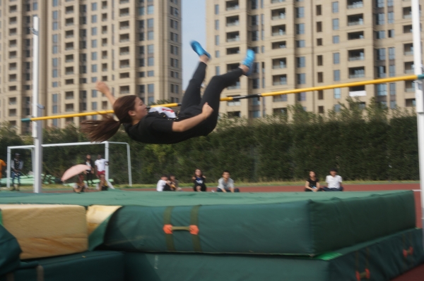 远处,女子组跳高不断发出一阵惊呼。只见参赛运动员从远处由慢至快地跑来,然后纵身一跃,以背跃式的优美姿势顺利跳过栏杆。这一根细细的杆子横在中间,像人生中需要跨过的一道坎。可是运动员以绝对自信的姿态成功跨越了过去,相信她们是最棒的!青春就是需要这样的激情!值得一提的是,国际学院的运动员王优芬同学继早上获得女子铁饼第一名后,再接再厉又取得了女子跳高第一名,学院的同学们都为她感到骄傲!