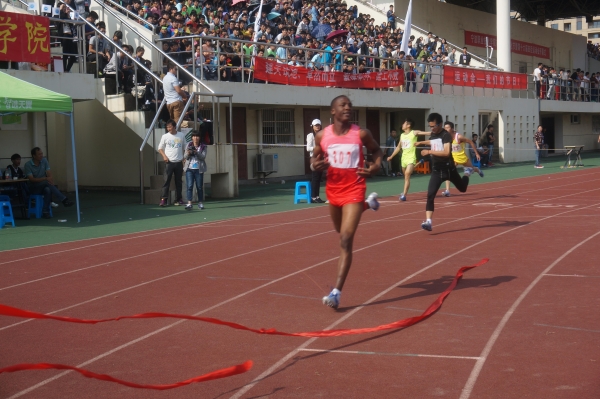 图为:国际学院运动员艾伦参加男子200米