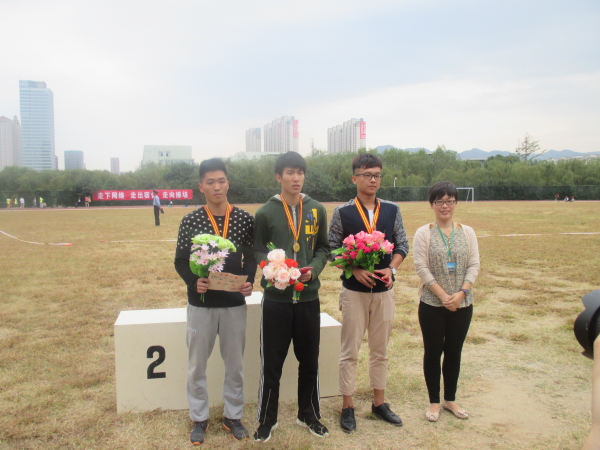 今天比赛项目较多,分别是男女子400米栏决赛,男女子200米预决赛,男女子4*100预决赛,以及男子5000米长跑,跳高跳远铅球等。当比赛时间一到,整个赛场顿时沸腾起来,加油助威声此起彼伏,络绎不绝。你看那径赛场上的工商学院的运动员,一个个就如矫兔般飞离起点,像离弦般冲向终点,使得在场的观众兴奋不已。无论每位选手是不是能取得第一名,但在工商学院的看台观众心里,他们一直是最棒的。因为他们的不屈不挠、顽强拼搏的运动精神已经胜过了一切。