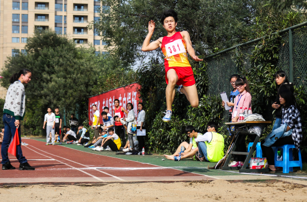 10月30日下午1点半,期待已久的男子跳远比赛终于开始了。天气些许闷热,但运动员们摩拳擦掌斗志高昂。运动场上,尘土飞扬,虽屡有运动员摔倒,但都是越挫越勇,站起来拍拍屁股酝酿下一次的战斗。助跑、踩点、起跳、凌空腾飞,一系列精彩的动作令人目不转睛。经过三轮预赛和一轮决赛,冠军终于出炉了。他是来自海天学院设备电气3122的俞佳峰同学,在这次比赛中跳出了5.99米的好成绩。在接受采访时被问到跳远有什么技巧时,他说:“一定要踩好点,整个人要跳起来,要有飞的感觉,这样才能跳得远。”比赛还有一天,希望运动员们都能飞在场中。