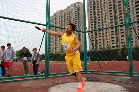 2014年10月30日上午8点45分,在东校区运动场举办的男子组铁饼比赛决赛即将开始,看台上的观众热情高涨,呐喊不断,运动员们斗志昂扬,拼搏的精神再一次被激情点亮。铁饼比赛时,每名运动员都有机会试投三次,获得前三次试投成绩前八名的运动员,还可以每人再试投三次,最终以最优成绩为最终成绩。比赛时,张正勇同学在裁判员确定投掷区域无人并挥下旗子时,握紧铁饼,摆出预备姿势,预摆,旋转,在保持身体平衡的同时,将铁饼掷出去,最终以28.03米的成绩取得男子组第三名。稍后出场的是建工学院韩进辉同学,他也不甘示弱,以饱满的热情,在短短的准备后,圆圆的铁饼以一个优美的抛物线飞出,以24.12米的成绩取得男子组第五名。