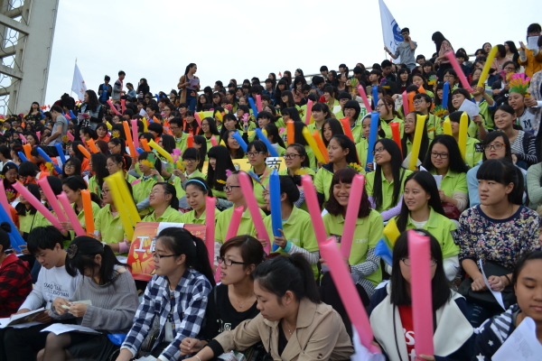 为给工商学院的运动健儿们加油,工商学院团委学生会外联部与志愿者服务大队共同组建了一支强大的队伍---工商学院拉拉队志愿者。拉拉队的同学们每天早上7点半在思源广场集合,统一着装,然后由志愿者带领拉拉队的同学,到看台上做好为运动员们呐喊助威。