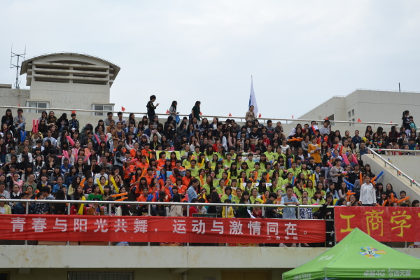 “工商健儿,你是我的英雄。工商学院,我们一起加油”。听,那最洪亮的加油声;看,那最庞大的队伍。这就是我们工商学院的气场,“工商出场,势不可挡!”运动健儿在赛场上争分夺秒的战斗,拉拉队们也在看台努力的战斗着。他们呐喊着,欢呼着,每一首歌,每一句口号,都是支撑他们一直跑下去的信念,是支撑他们摔倒后勇敢起身的力量!拉拉队们忘记嘶哑的嗓子和疲倦的身躯,依然奋力的为运动健儿们加油,加油声震耳欲聋。他们用自己最大的力量点燃着希望的操场,带动了全场的热情,挥起你们手中的旗帜,敲打起手中的加油棒。用力的呼喊着,加油,工商健儿们,你们是最棒的!