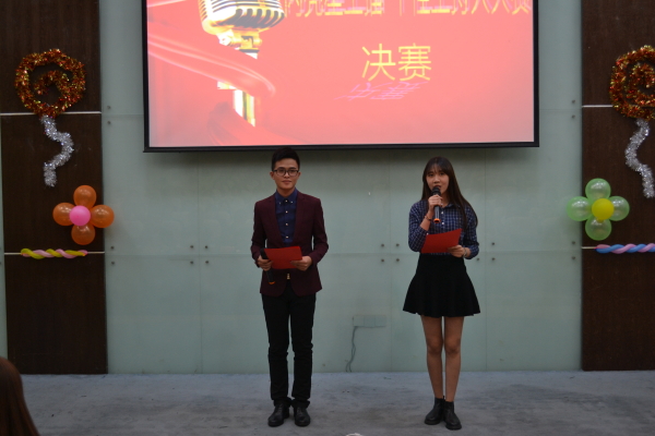 在一片愉悦的氛围中,主持人余小强,谢静闪亮登场。随着主持人幽默的开场白,此次大赛正式开始。本次决赛分为两轮,第一轮的内容是模拟主持和临场随机问答。比赛体现了选手们对主持的热爱还有他们随机应变的能力。每位选手表演完后,评委们都对他们提出了中肯的点评和鼓励。第一轮结束后,魏雷老师的表演将现场的气氛拉到了最高点。紧接着,第二轮的比赛开始,这轮比赛的内容是选手两两搭档主持游戏环节。选手们让整个现场都嗨了起来,观众们踊跃的参与到游戏当中,气氛融洽。