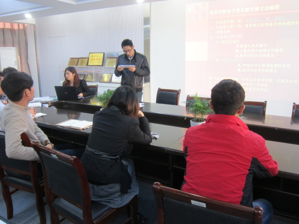 2014年11月13日下午1点,电信学院在京楼党员之家召开电信学院电子党支部支部大会。本次支部大会我院辅导员刘利峰老师主持,支部党员参与此次会议。