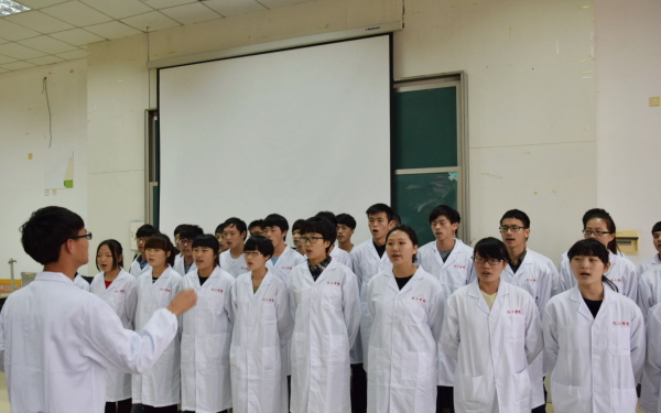 图为:化工学院生物3140班全体同学合唱