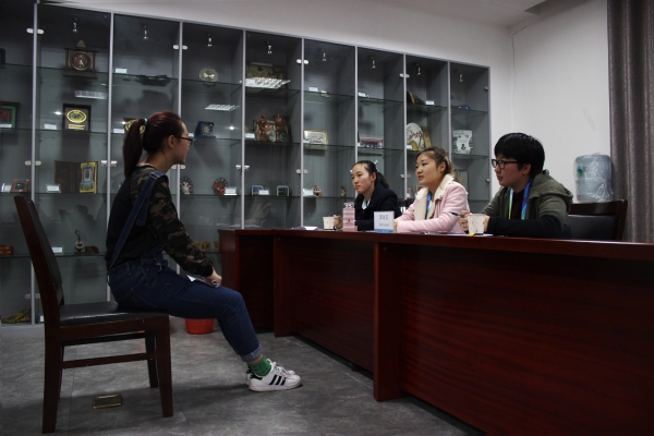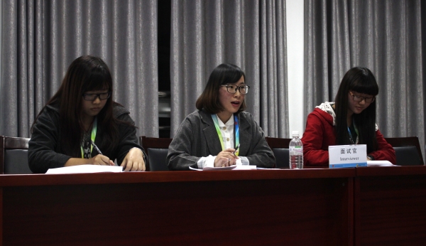 本次面试共分为两轮进行,主要分为两个时间段。每一位应试者会用英语简单的介绍自己,并向提问者展示自己的才能。周宁、方丽等三人负责第一号面试室,在这偌大的教室里,应试者们在他们面前都显得特别紧张,但她们以友好的方式向应试者提问,这样缓解了面试的紧张气氛。所有面试官都认真地了解每一位应试者,并理智的判断他们是否符合IPP的工作要求,面试官们的表现可圈可点。
