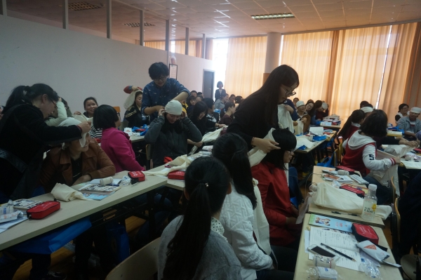前两个小时的理论培训告一段落,接下来的就是实践操作了。大家都显得十分积极主动,悉心听取廖医生的教导,通过自己的实际操作了解到了,到底怎样才是正确的急救措施、如何才能正确救助伤者。