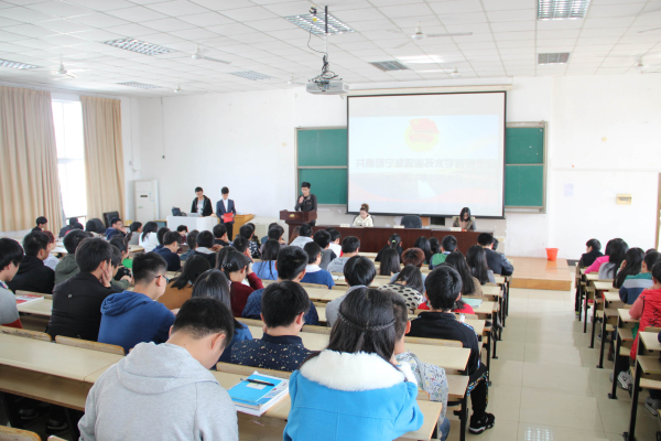 11月26日中午11点40分,在我校2号楼503教室举行了2014级院团委新干事的动员大会。 莅临本次动员大会的领导有院团委书记励宁老师,院团委干部米娜、童燕老师以及往届的院团委八大部门干事。 本次大会在全体人员起立奏唱共青团团歌的氛围中拉开序幕, 接着往届八大部门干事依次上台做部门工作分享,他们不仅向新干事分享了自己的工作心得,还提出了自己的关键词:“积极”、“细节”、“笑容”、“目标”、“求真”、“志愿”、“责任”、“表达”。