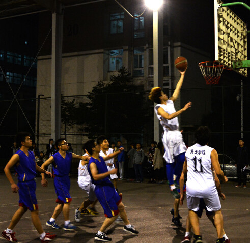 半场结束时,海天学院已占据了不小的优势。下半场开始,比赛也在国际学院队员们的拼搏中进入了白热化阶段,快攻、阵地、妙传、篮板,全线开花,火力十分之猛烈,引起了观众一阵阵热烈的掌声。但我院队员力求稳健,稳扎稳打,比分始终保持领先。海天学院队员们强劲的实力和优异的变现,让比赛已没有了悬念。最终,我院顺利拿下本场比赛,进入复赛。赛后,球队队长告诉记者:“虽然赢了这场比赛,但我们并没有骄傲和松懈,我们将投入更高强度的对抗训练,为之后的比赛作充分准备!”
