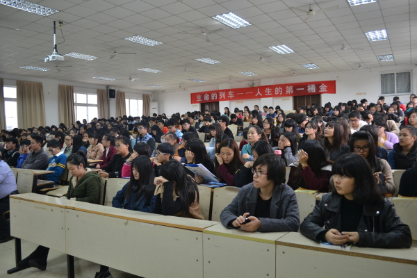 为了让大二的同学获得更多的就业信息,明确今后就业目标,2014年11月28日13:30,在精技搂 503阶梯教室举办了一场大型宣讲会,并特邀宁波市口岸协会国际联运分会会长,宁波天时国际贷运代理有限公司董事长乐振天;口岸协会副会长,浙江九龙国际物流有限公司董事长林建华;口岸协会副秘书长,国际联运分会秘书长孟荣刚。参加此次宣讲会的有13届国贸专业四个班的同学和商务英语,市场营销专业的部分班级同学。