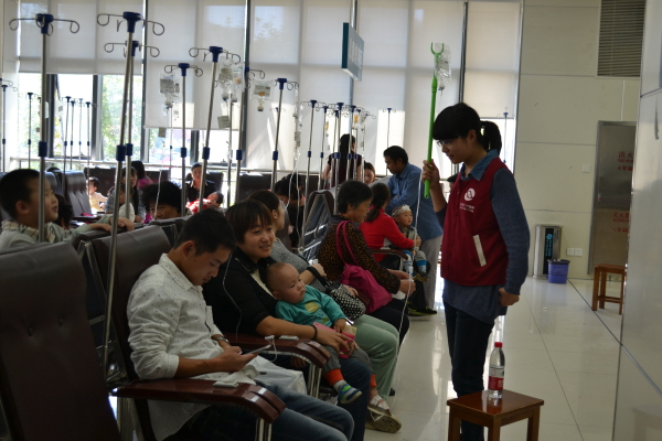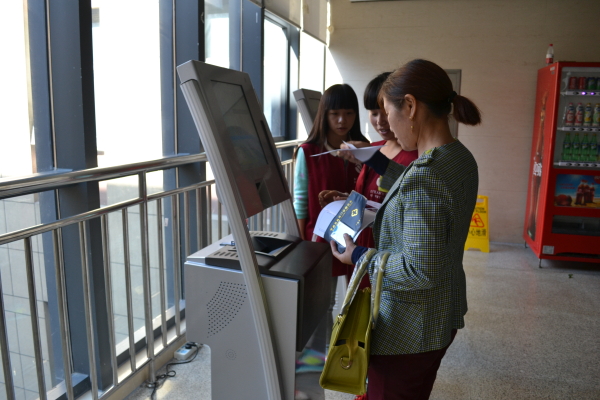 阴阴的天气下,志愿者们到达了目的地。在带队干事安排完工作后,志愿者们满怀热情,立马投入到工作中。有的在自助挂号区为病人挂号,以便他们能及时就诊,有的在化验单取票处为焦急等待结果的病人取化验单,还有的在大堂内为不知去向的病人指路。身穿红色马甲的志愿者,成为了医院里一道靓丽的风景,一句简单的谢谢,是对志愿者们最大的肯定与回报。