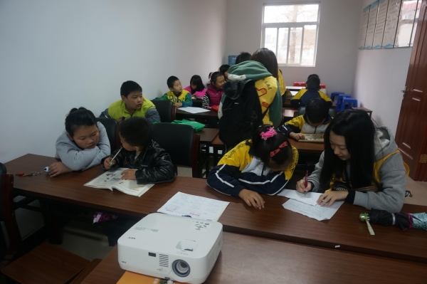 在经过一系列的人员调配及任务分配后,志愿者们开始扮演一上午“老师”的角色,对社区的孩子们进行作业辅导。当孩子们遇到疑难困惑的时候志愿者们的出现无疑为一个个好奇的眼神做出了最好的答复。孩子们也都十分积极地提问,时常会让志愿者们帮忙检查作业或默写课文。当然,有时天马行空的问题也会难倒志愿者们,或许这就是孩子的世界。