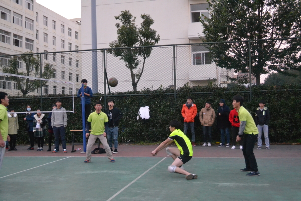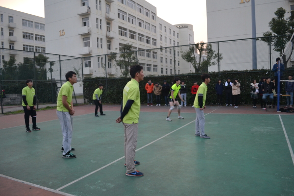 在比赛过程中,每个队员都能从容不迫的接下每个球,而且不管是输赢,他们都相互鼓励,相互加油,并且在每颗球结束后马上调整队伍的不足,这也充分展现了同学们奋勇拼搏,不轻言放弃精神。最后,工商学院以2:1的总成绩,打败化工学院,赢得此次比赛。