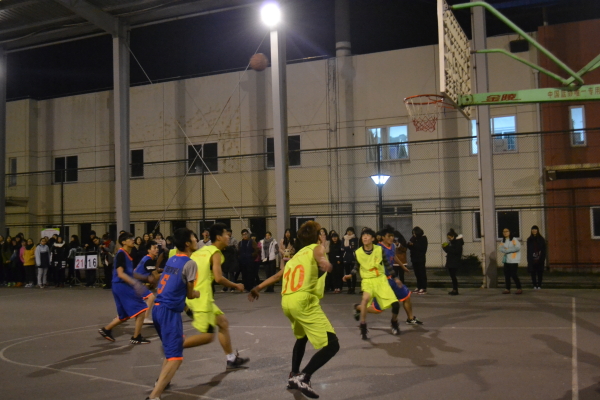 寒冷的天气并没有阻碍同学们的热情,比赛开始前,篮球场周围围满了前来观看的同学。同学们热情高涨,暗暗为自己所在分院队员加油。队员们准备就绪,紧接着激烈的比赛正式开始。现场气氛急速攀升,比赛双方很快就进入了角逐的状态。工商队员们蓄势待发,凭着精妙的传球,牢固有序的防守,花样百出的运球,迅速夺得一个2分中投。精彩的赛事引得现场掌声阵阵,对方啦啦队更是不甘示弱,一声声加油此起彼伏。上半场比赛结束,中场休息时两队队员迅速商讨战略,以求更好发挥所有水平。短暂休息让队员投入更好的状态,随着比分不断交替上升,比赛进入白热化阶段。一连串的三分球将气氛推向高潮。最后经过紧张的角逐,工商学院以25比28的比分惜败艺术学院,尽管工商学院队伍失败了,但他们的“不抛弃,不放弃”的精神始终感染着现场的每一个人。