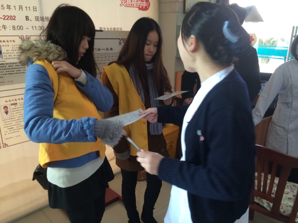 为培养学生的爱心与责任感,并将志愿者奉献精神更好的传递下去,2014年12月6日化工学院7位志愿者在志愿者部干事的安排下,于学校东门集合,前往北仑区中医院。