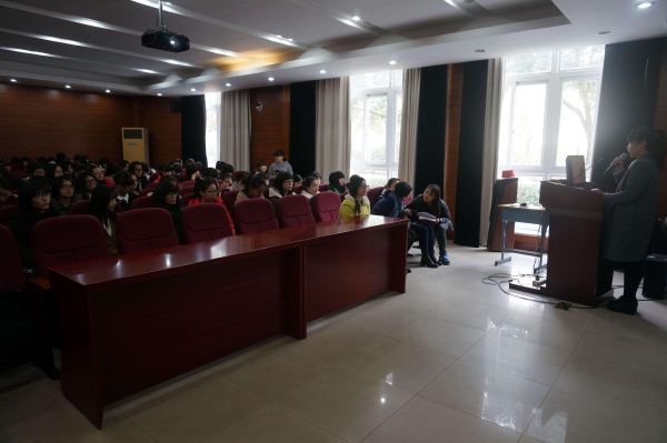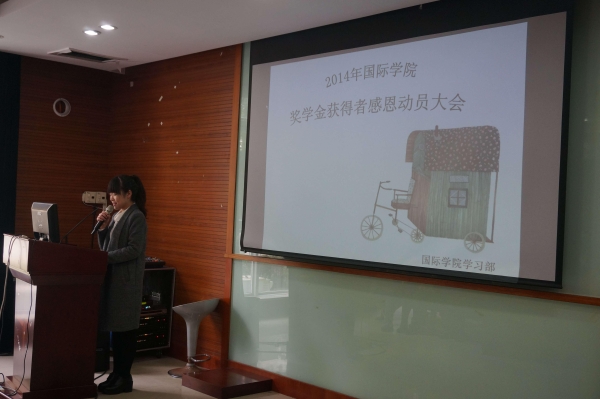 记者到达102号房间时,已经有许多同学聚集在这里等候,12点30分大会正是开始。这次到场的人员主要有国际学院的吴艳艳老师、王欣老师、袁建萍老师和新学期奖学金获得者们,这次的主讲老师是袁建萍老师。大会由主持人宣布开始,老师已感恩节为开头引入今天的话题。获得奖学金的都是学校的精英,所得的奖学金是由许多爱心人士提供的,所以同学们,要懂得感恩。感恩父母,感恩老师,感恩政府,感恩帮助自己的爱心人士,所以要学会反哺社会,帮助以后的学弟学妹们,为思源基金贡献一份自己的力量。老师的一席话完毕后,赢得了同学们热烈的掌声。