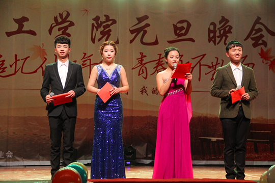 图为:晚会现场据悉,建工学院元旦联欢晚会以一段精彩的开场视频拉开序幕,节目一开始,第六公社充满活力、激情四射的表演瞬间点燃了现场的空气。随着第六公社的精彩表演结束,组织部带来的荧光舞《动感火柴人》凭借其独特新颖的舞姿带动起观众火热的心;建管3142班级全新的《白雪公主》不但将大家的童年梦唤醒,还增添了无限欢乐;新闻部表演的反串小品《甄嬛传》,滑稽搞笑的语气、夸张的动作让现场观众捧腹大笑;《黄河大合唱》的演员们将观众引领进了一个诙谐幽默的世界。随后,动人的舞姿、搞笑的小品和动听的歌曲,以及轮滑社的精彩特技众多节目,让观众拍手叫绝,连连叫好。在晚会现场,通过微信大屏幕让观众们积极参与,还通过微信进行现场抽奖活动,惊喜不断,奖品不断。在整个晚会的过程中,高潮迭起,观众尖叫连连,建工学院的元旦晚会为观众们献上了一次视觉上的饕餮盛宴。