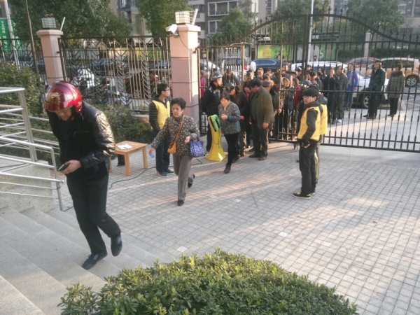 图为:志愿者在维持秩序