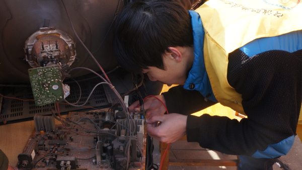 图为:志愿者在维修家电