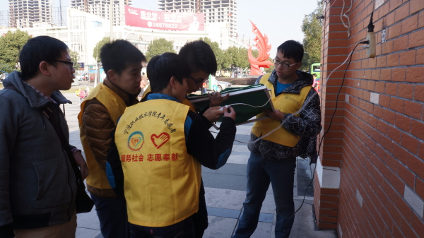 图为:志愿者在调试电器