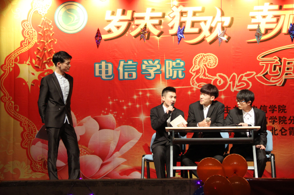 “龙马开道辞壹肆,三羊迎春贺壹舞。”2014年12月25日晚6点,宁波职业技术学院电信学院“快乐任性,旦事有你”2014年元旦晚会在我校李惠利大剧院隆重举行。电信学院党总支书记龚友国老师、黄鹂社区党委书记傅良忠先生、黄鹂社区居委会主任贺赛平女士、院团委米娜老师、电信学院团委书记陈宇老师、辅导员刘利峰老师和陈洁琼老师、计算机专业主任孟德欣老师老师应邀莅临晚会现场,与近千名宁职学子喜迎双旦,相约2015。