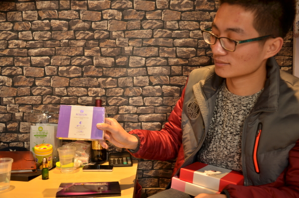 图为:王杨展示其微商产品