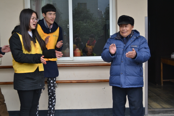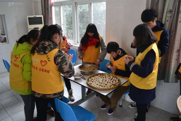 历经了大约两个小时的车程,志愿者们终于来到了梅山乡敬老院。一进敬老院的大门,就有几位爷爷在门口欢迎志愿者。细心的志愿者们带去了新鲜的饺子馅和水果,还准备了文艺节目送给老人们。随着志愿者们的到来,敬老院里顿时萦绕着欢声笑语。在整个志愿活动开展期间,志愿者们有的在厨房包水饺,准备老人的午餐;有的到各个房间里,陪老人们拉家常、讲笑话和养生小知识,来老人们带去了欢笑与快乐;有的帮老人整理内务,打扫卫生,捶背,让老人变得轻松。
