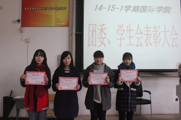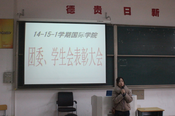 为鼓励在这一学期中学生会、团委学生干部中工作出色,积极的学生会干部部门,于1月3日,国际学院在明德楼开展表彰大会,国际学院团委书记王欣出席大会。