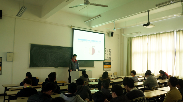 3月19日中午12时许,于海天楼506举行了班级特色项目的中期检查。同时,由各班班长或者团支书及班级项目负责人在此次检查中对项目的规划和开展情况进行了一次集中性的阐述。 在此之前,各班代表在准备着阐述所需的PPT或是其它文件的电子稿,每个人都希望通过自己的表现可以使本班的特色项目获得老师的赞赏。伴随着大家紧张而激动的心情,本次活动也正式开始。