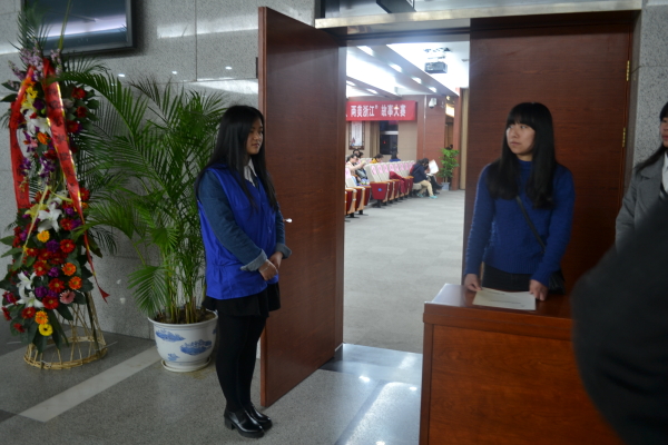 随着时间推进,晚会也即将开始。陆陆续续的听众来到了报告厅门口,义工大队的同学们则有序为他们进行检票,以保证会场的秩序。在会场里的同学则细心为已经到来的听众寻找位置。他们各司其职,只希望用自己微薄的力量带给观众们一个美好的晚上。