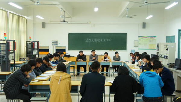 图为:会议现场 首先党总支书记裘广宇同志对这次民主生活会的形式和要求达到的目地作了讲话,本次会议着重引导学生党员在五个方面查找和解决可能影响自身全面协调可持续发展的问题。一是联系思想实际,理论素养和理想信念等方面差距,进一步筑牢思想基础;二是联系学习实际,学风和学术研究等方面存在的问题,进一步完善知识结构,增强创新发展能力;三是联系日常生活,个人品行和文明行为等方面的问题,进一步加强思想道德修养;四是联系党支部实际,支部建设方面的问题,进一步加强学生党支部在班级建设,校园文化建设,学风建设等方面的堡垒作用:五是对照学生党员先进性标准,党员模范作用等方面问题,进一步增强学生党员实践性先进性的自觉性和主动性。