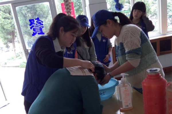 打扫完卫生后,一些会说宁波当地话的同学就亲切的与老人聊起了天,有个奶奶在问同学们这是在做什么,同学们每个人都微笑并骄傲的回答:我们在做义工活动。随后,她还跟同学们拉起了家常,每个人都和爷爷奶奶们热情交流,嘘寒问暖。期间还有个左手不能活动的奶奶,她说自己已经许多天没有洗头。了解到情况之后,同学们立刻去拿脸盆和毛巾并告诉这位奶奶,他们很愿意帮忙。紧接着倒上了水,多次询问奶奶水温是否合适,生怕奶奶会感到不舒服,终于在同学们的帮助下,奶奶很快便洗完了头。