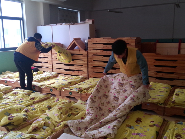 下午1点30分,志愿者们到达黄鹂幼儿园,老师们对志愿者们工作进行了详细的解释并进行了分工。志愿者们立即投入到工作中,男生们帮助幼儿园老师刷轮胎,涂上颜色;女生进行教室的装扮,进行剪纸活动。小朋友午睡过后,志愿者们帮助孩子们起床、整理床铺。并带领吃完点心的小朋友到操场,与孩子们一起活动、玩游戏。