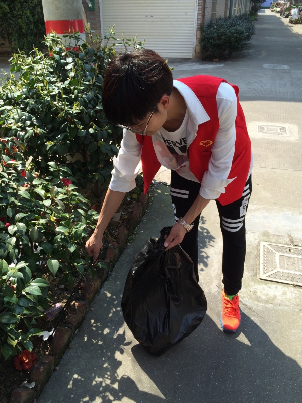 为使陈华浦社区有一个更好的环境质量,使更多的人倡导环保。4月2号,化工学院的志愿者们来到陈华浦社区,在社区工作人员的带领下,志愿者们身穿小红衣,沿着社区道路,在道路两侧花坛捡拾垃圾,开始了清扫活动。