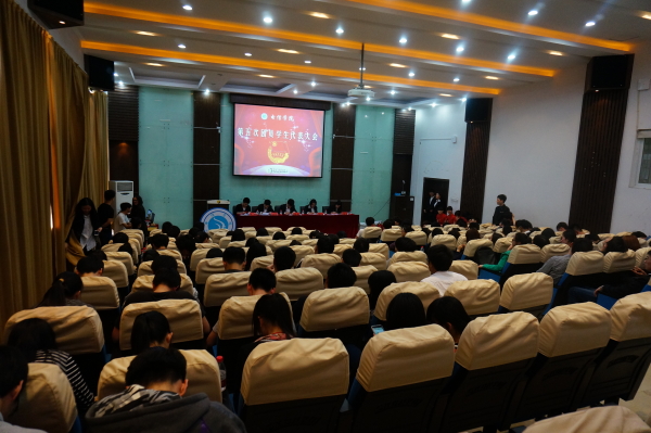 大会在庄严的国歌中拉开帷幕。首先校团委书记励宁老师进行了发言,他高度评价了电信学院团委学生会上学期的工作,并肯定了电信学子独特的修养和在学校各项活动中的优秀表现。并提出了对于电信学院的希望和建议,对我院的学生会发展寄予期待。紧接着我院副院长汪志达副教授对团委学生会2014年的工作进行了汇报总结,表示团委学生会在过去的工作中团结互助、相互学习、工作井然有序,学院学风建设良好,科技创新氛围浓厚,并对2015年进行展望,对今后工作方向及重点加以说明。