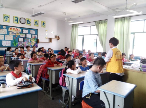 走进校园,学生们正在积极参加体育活动活跃的景象出现在志愿者的眼前,化工学院志愿者们找到了五年级三班的班主任老师张老师,张老师与三位志愿者做了简单交流,交代了如何把握控制五年级三班的纪律和秩序等问题。交流结束后志愿者走进教室,这时的学生正在认认真真地做午间眼保健操,随后志愿者便开始正式上课了,本次志愿者讲课的主题是关于雷锋事迹以及中国伟大英雄人物事迹。