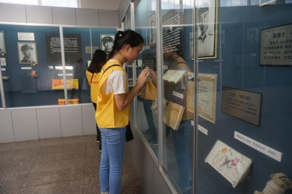 完成祭扫后,志愿者们还在馆内工作人员的接待下参观了纪念馆主体内的陈列室。室内共放置了225位烈士英名,其中包括95名北仑籍烈士,共同展出的还有90多件的革命文物、烈士遗物以及100余张的珍贵历史照片。在照片及文物旁都有详细的人物及背景的文字介绍。